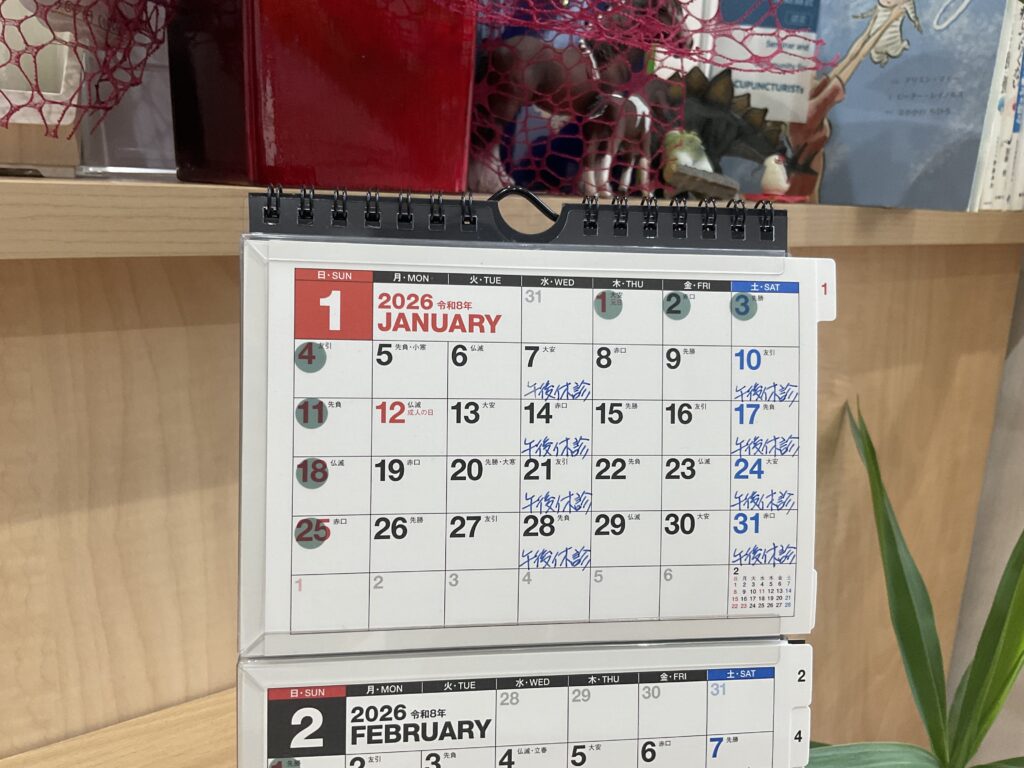 さて1月の営業ご案内です