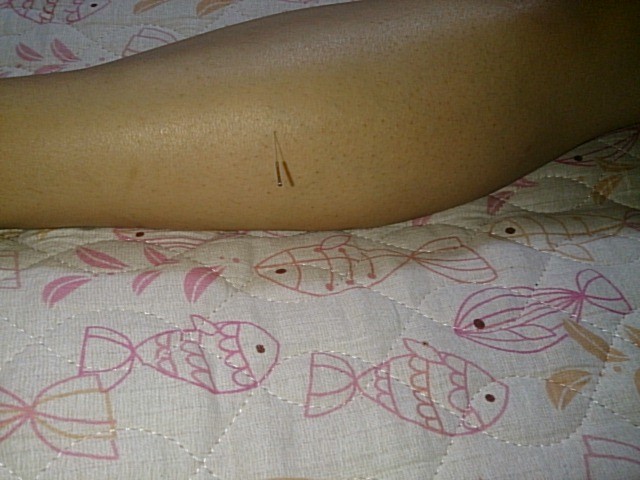 熱の状態は治まっていたので、脾胃を回復させるような治療をおこない、手三里と巨虚下廉で督脈上の圧痛は治まるが、陽関(腰)のみ圧痛が残ったため今回は直接ハリをしました。